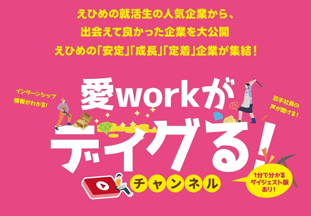 \「愛workがディグる!チャンネル」特設サイト公開!/ジョブカフェ愛workが、県内企業の魅力を多角的に深く掘り下げている(=ディグる)サイトです!企業30社の魅力動画に加え、20社のインターンシッ..