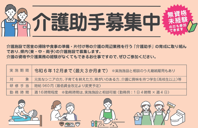 \「介護助手」募集中!/介護施設等で食事の配膳やシーツ交換など、介護の周辺業務を行う介護助手を募集中です。学生さん、子育てを終えた方、元気なシニアの皆さん!お気軽にお問い合わせください!▼詳しくはこち..
