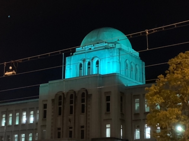 \手話言語の国際デー☆ドームライトアップ/聞こえない人と聞こえる人の共生社会の実現と、手話は言語であるという認識を広めるため、手話言語の国際デーである9月23日にあわせて、県庁本館ドームを、世界平和を..