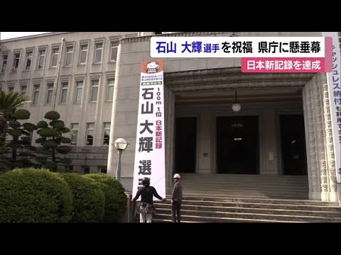 パラ陸上の日本選手権・男子100メートルで日本新記録を達成した松山市出身の石山大輝選手の快挙を祝い、愛媛県庁で13日に懸垂幕が掲げられました。石山大輝選手(25)は4月、ニンジニアスタジアムで開かれた..