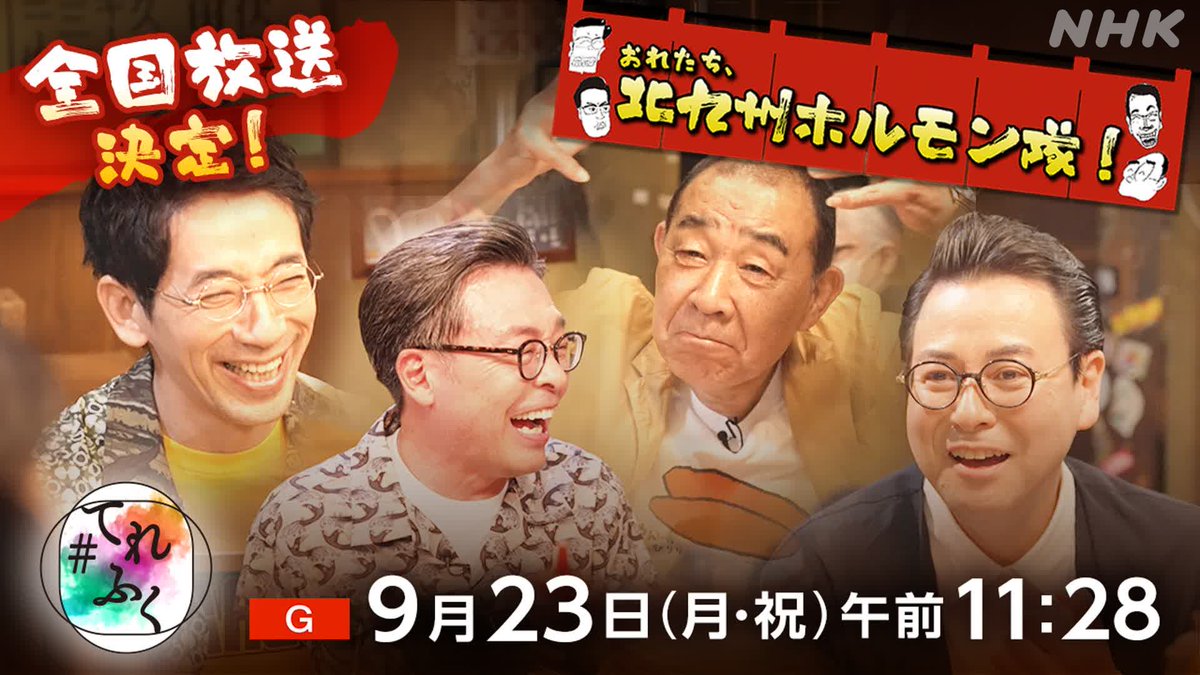 /いよいよあす!全国放送\#てれふく「おれたち、北九州ホルモン隊!」9/23(月祝)午前11:28~#NHK総合#でんでん#光石研#野間口徹#鈴木浩介#ホルモン隊アナウンサーの神戸和貴です。いよいよあ..