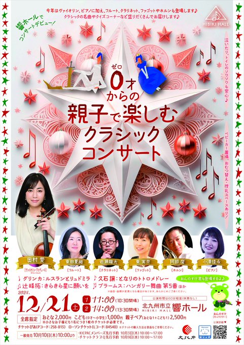 【明日公演|ご来場の皆様へ①】クラシックの名曲や子どもたちの大好きな曲を一緒に楽しもう!▼0才からの親子で楽しむクラシックコンサート12/21(土)<午前>開場10:30/開演11:00<午後>開場1..