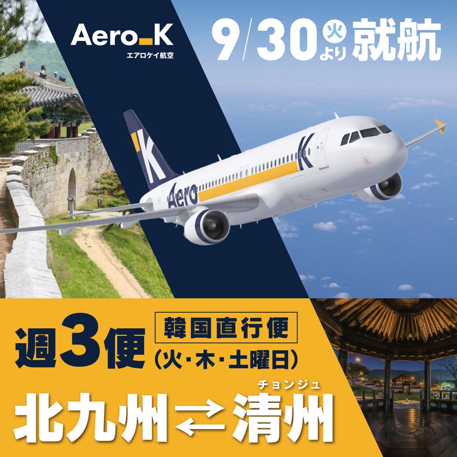 \北九州空港から新しい韓国旅へ/北九州⇔韓国・清州が直行便で繋がる9/30~AeroK就航!LCCでお得に、北九州空港から新しい韓国旅へ!駐車場2日無料&パスポート取得支援もまだ知らない清州の魅力を発..