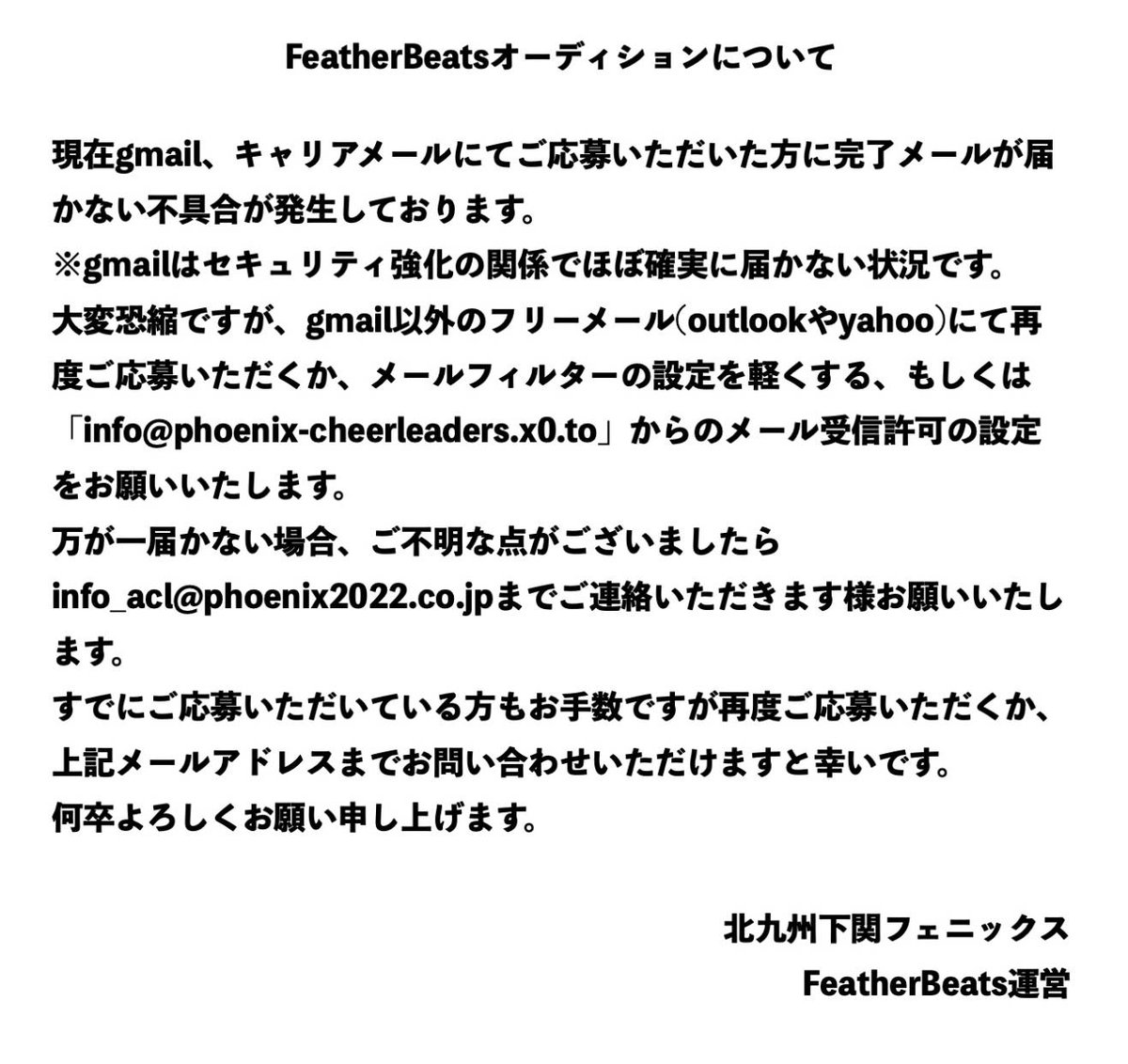 【大切なお知らせ】FeatherBeatsオーディションについて既にご応募いただいている方も再度お送り頂けますと幸いです。応募が完了しているか不安な方はinfo_acl@phoenix2022.co...