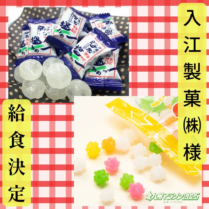 \\北九州マラソン2025給食決定//今回ご紹介するのは「こんぺいとうと塩飴」(入江製菓(株)様)北九州マラソンには欠かせない逸品!!レース中に食べるこんぺいとうは感動的な甘さです塩飴はランナーを守っ..