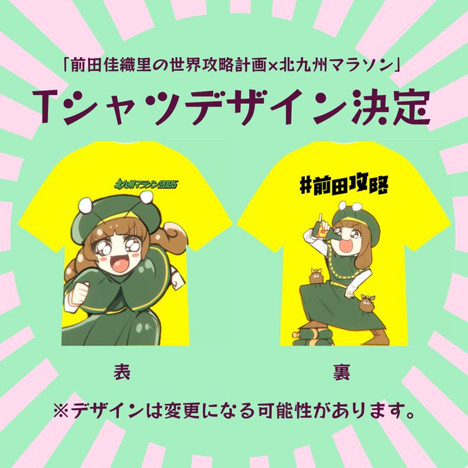 /#前田攻略×#北九州マラソンコラボTシャツデザイン決定\前田佳織里応援枠の参加賞にもなっているコラボTシャツのデザインが決定しましたど派手でかわいい応援枠もまだまだ募集中ですTシャツを着てかおりんか..