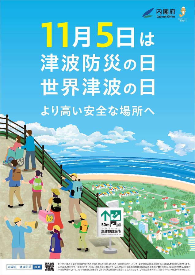 11月5日は「津波防災の日」1854年の安政南海地震(南海トラフ巨大地震の一つ)の教訓をもとに制定された日です。