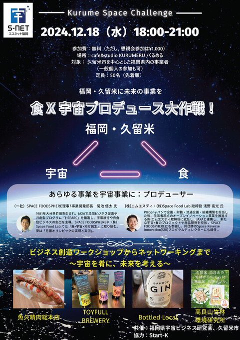 2024.12.8に、福岡県#久留米で、食×宇宙のワークショップ!参加者募集中!#宇宙食#宇宙ビジネスhttps://city.kurume.fukuoka.jp/1500soshiki/9090ni..