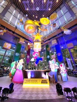 東京・丸の内のクリスマスはスーパーマリオであふれかえってました!写真は丸ビル「スーパーマリオのパワーアップイルミネーション」。近隣にはピーチ姫、ヨッシー、キノピオなどのホリデーオブジェも。全6カ所中4..