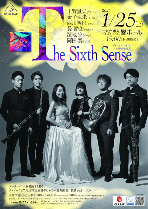 【明日10時~チケットクラブQ先行】確かな演奏テクニックと色彩豊かな音色実力派奏者たちによる大注目のアンサンブル!▼TheSixthSense(ザ・シックスセンス/木管六重奏)1/25(土)15:00..