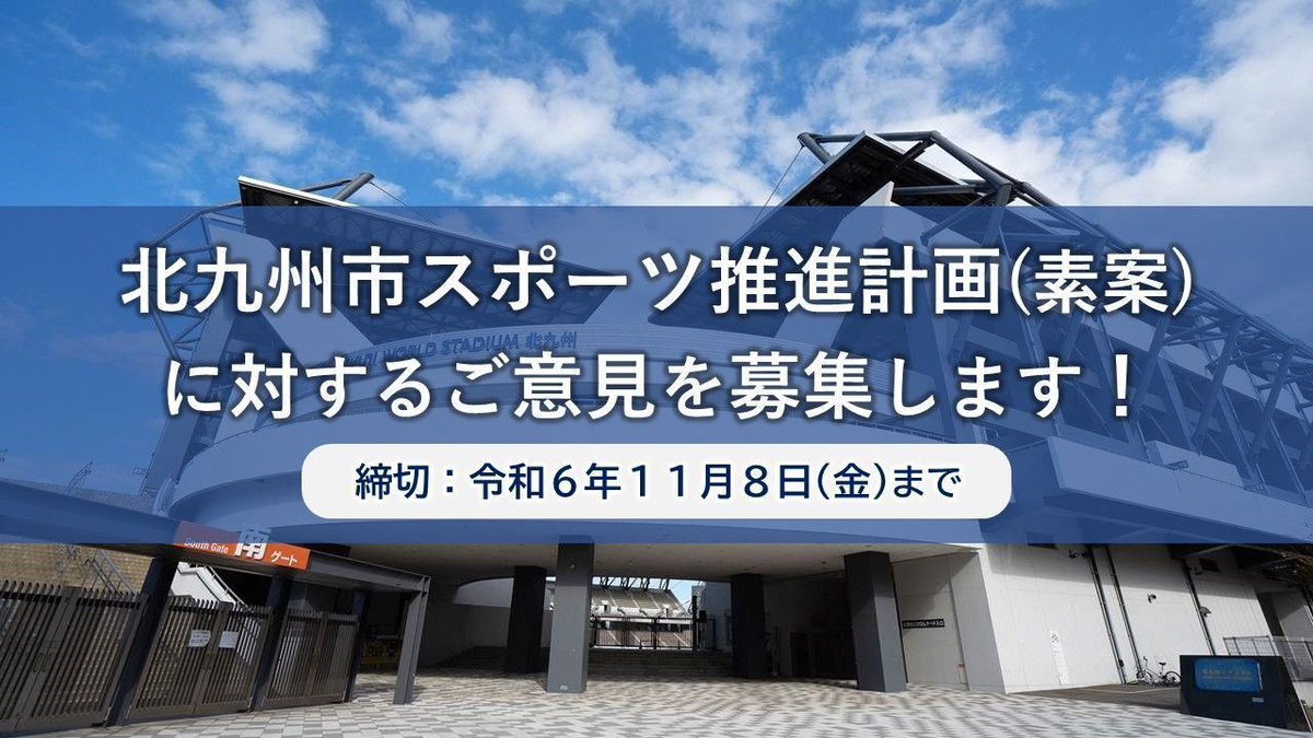 【ご意見募集します】「北九州市スポーツ推進計画」の素案を作成しました!スポーツの持つ力で、国内外から多様な人々を惹きつけ、地域・経済の活性化を促すことで「まちの成長」を目指していきますぜひ、皆さまのご..