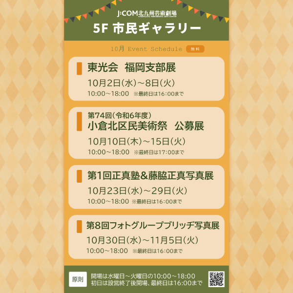 【市民ギャラリー10月のスケジュール】リバーウォーク北九州5階入場無料内容はかるぽーをチェック!https://culpo-kitaq.jp/?page_id=1580北九州芸術劇場HPでも!http..