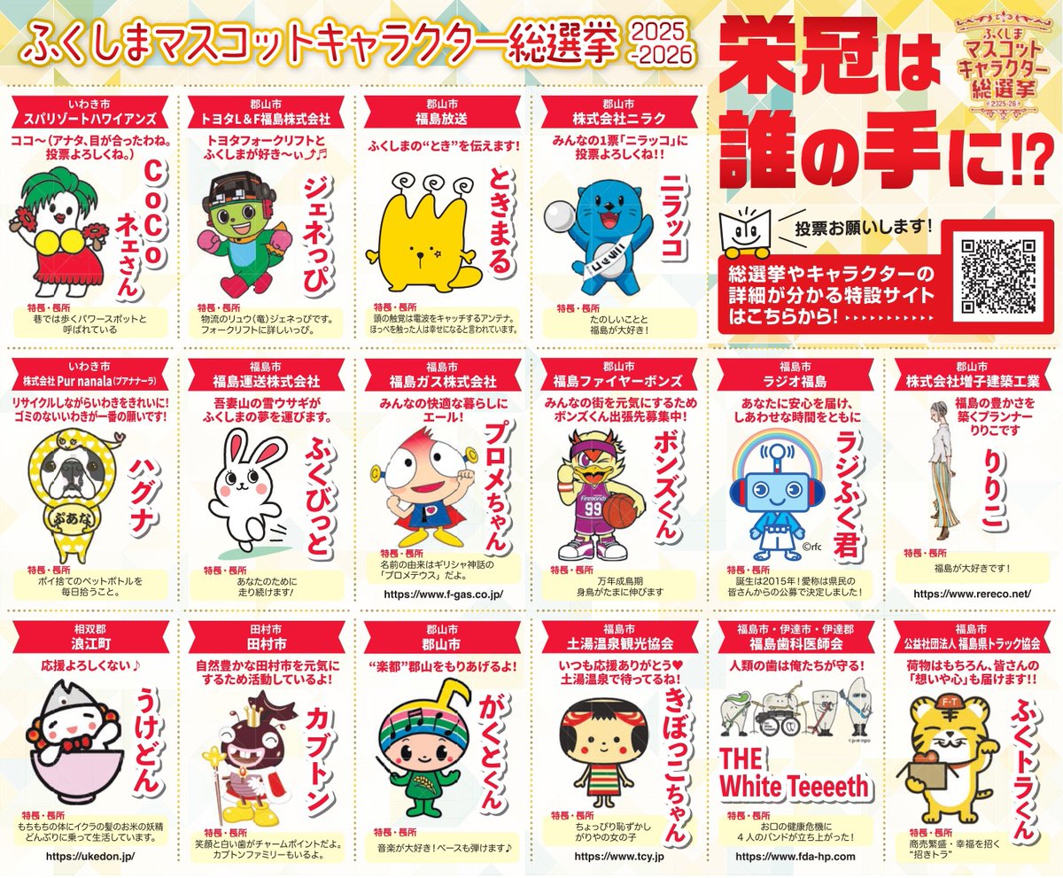 #ふくしまマスコットキャラクター総選挙公示から約1か月が経ちました!現時点での途中経過をお知らせします!企業部門の1位は部門内投票率40%で#二ラッコ(郡山市・ニラク)!市町村・団体部門の1位は部門内..