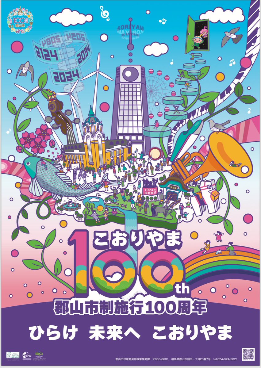 【郡山市制施行100周年♪】郡山市は本日月日に、市制施行100周年を迎えました!郡山市は100年前の大正13年9月1日に全国で99番目の市として誕生したんだって!みんなも、郡山市の誕生日をお祝いしてね..
