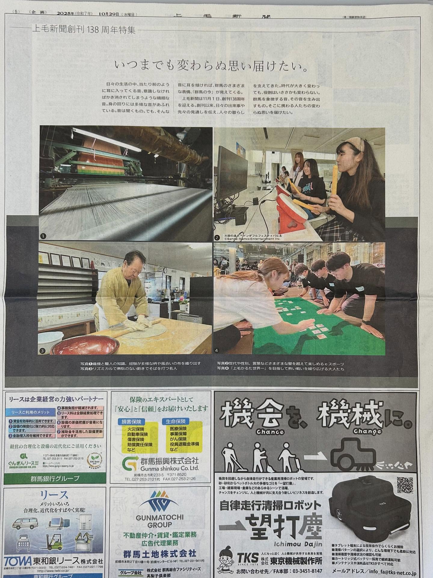 本日付の紙面で創刊記念特集を掲載しました🗞️皆様に支えられ、上毛新聞は創刊138周年を迎えました。今年は「音から見える群馬の今」をテーマに、群馬を象徴する音を取材しました。動画も撮影しましたのでぜひご..