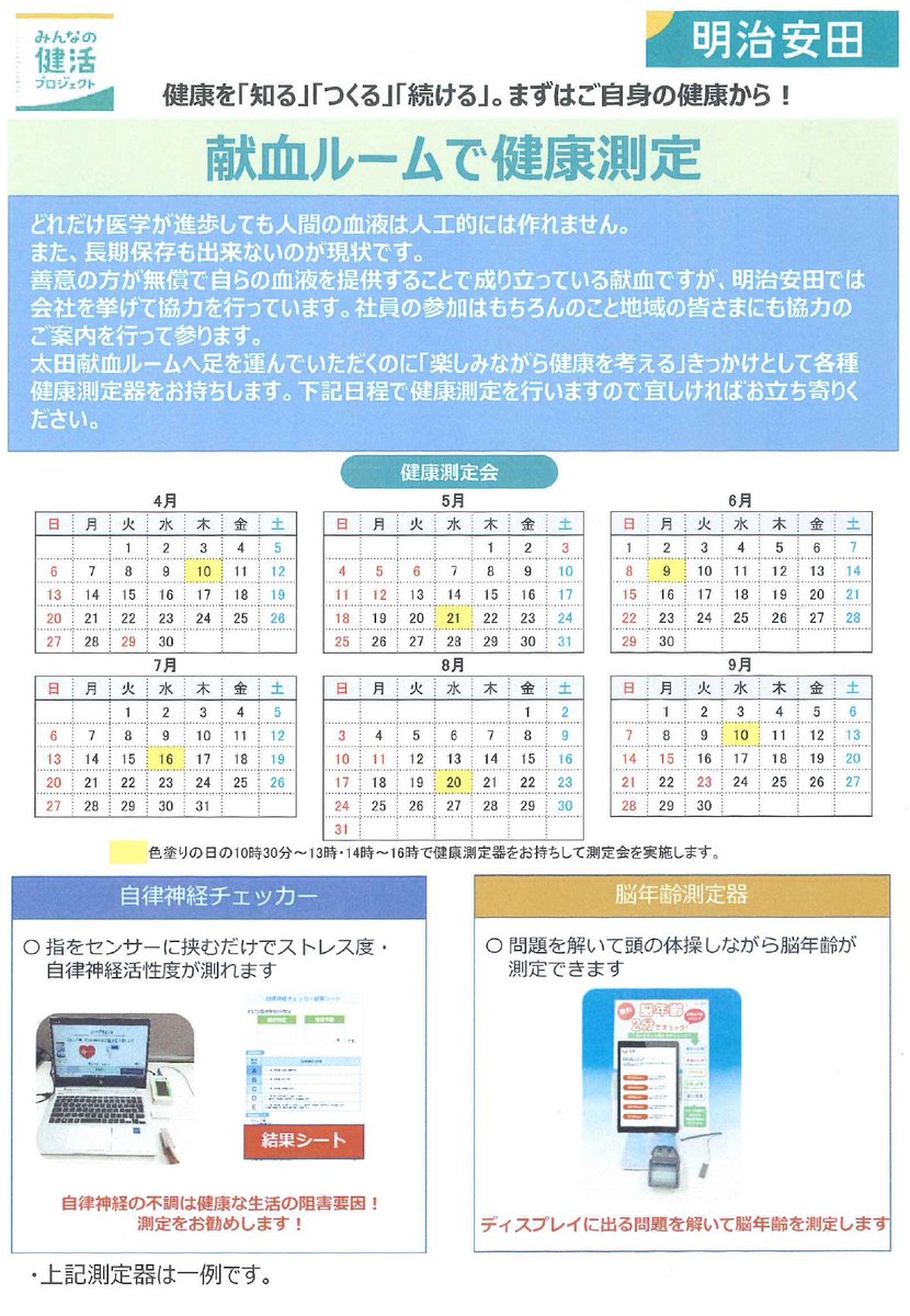 #太田献血ルーム です 明治安田太田支社様主催で 健康測定会を開催します! 9/10(水) 10:30~13:00、14:00~16:00 当日、 #献血 を受付された方はご体験いただけます 皆さんのご協力をお待ちしております