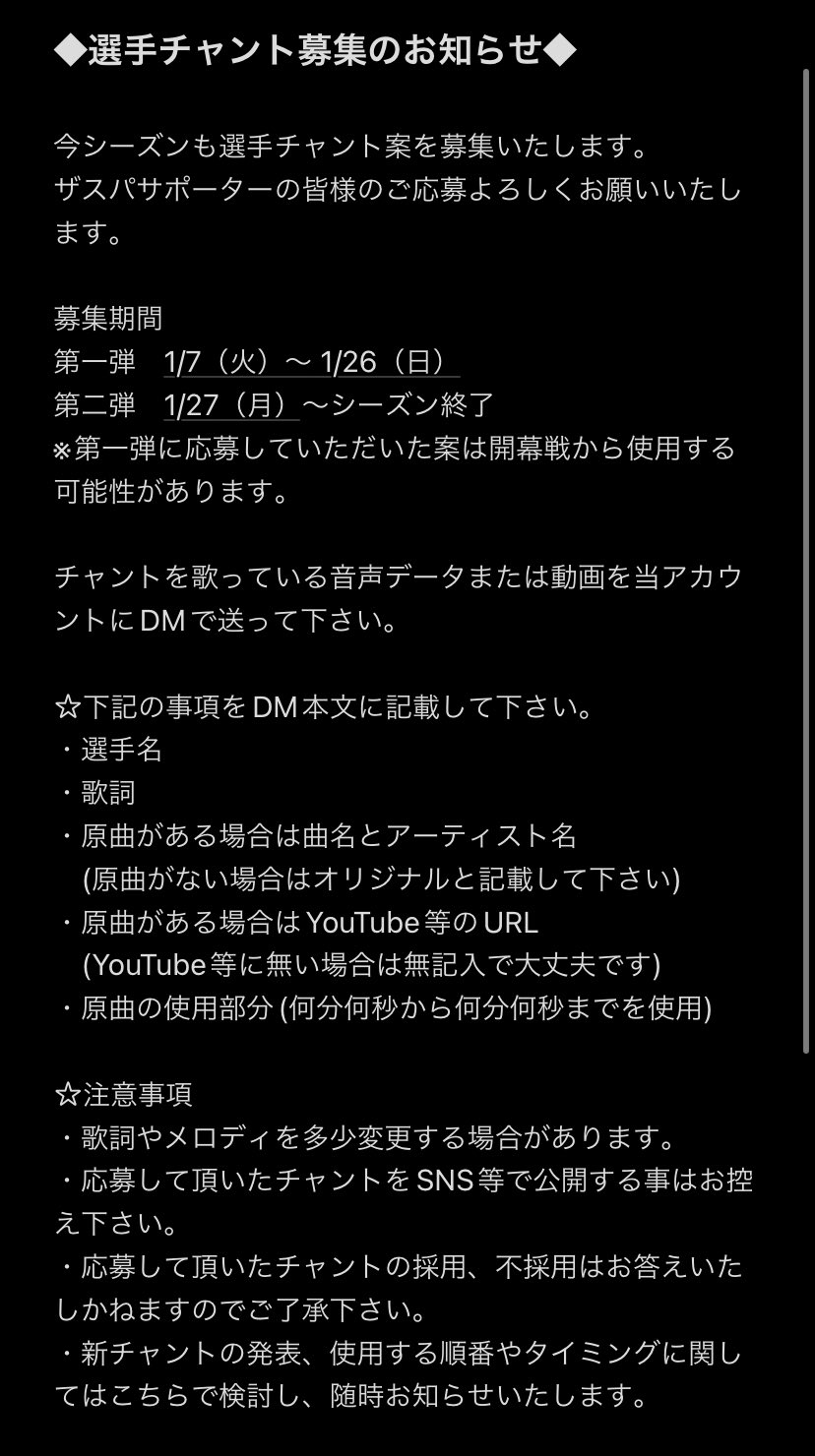 皆さんこんばんは!今シーズンもチャント案の募集を行います!皆さん是非よろしくお願いいたします!!#thespa