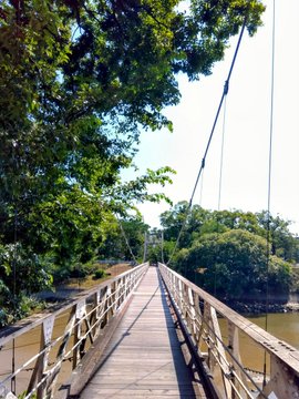 おはようございます。先日、お散歩をしていると、可愛らしい橋を発見工兵(こうへい)橋と言って人がすれ違えるくらいの細さの吊り橋渡ってみると少し揺れているよう。なつかしさを感じられるのでおススメです。#隣..