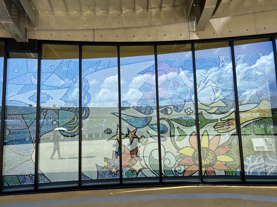 #エディオンピースウィング広島で見つけました!ペットボトルの蓋で点描でっていうのがすごいです県立熊野高等学校四、熊野第四小学校の皆さんが参加されたようですね#広島