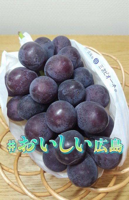 皆さん今日もお疲れさまでした。 今日は 「黒い真珠 三次ピオーネの日」 でもあります 露地ものの最盛期と、 く(9)ろ(6)の語呂合わせから と〜ってもジューシーです #おいしい広島 #広島愛がとまらない #皮と果肉の間に旨みが詰まってます