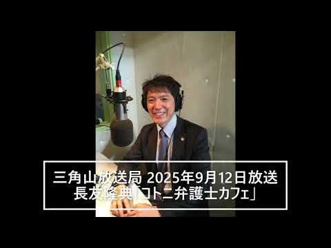 長友隆典さん「コトニ弁護士カフェ」札幌市西区のコミュニティFMラジオ局三角山放送局で、2025年9月12日に放送された番組音源です。●出演=小野暁世史弁護士と長友隆典弁護士の週替り●毎週金曜日10時3..