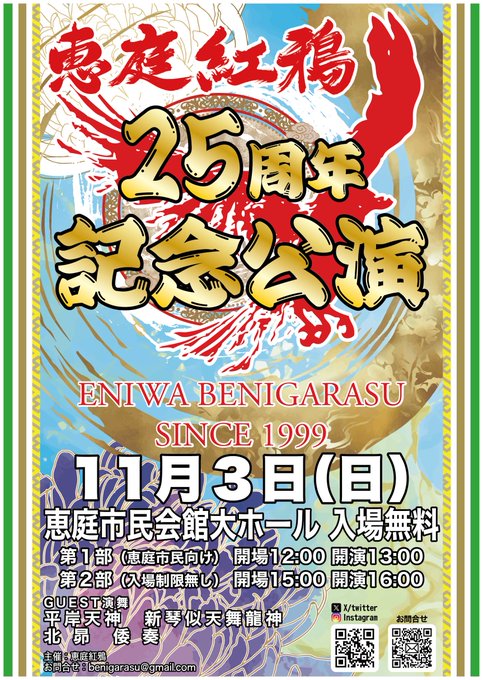 今週末、恵庭では「恵庭紅鴉25周年記念公演」が開催!”まちのチーム”として賑わいをつくり・伝えるチーム@benigarasu1999の節目をぜひ一緒にお祝いしてください11/3(日)恵庭市民会館大ホー..