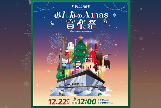 12/22(日)開催みんなのXmas音楽祭エスコンフィールドがXmas一色にプロのアーティストから小学生、高校生まで様々な音楽が集結クリスマススペシャルフードもご用意さらにXmas色に彩られた花火約1..