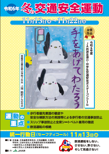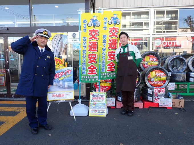 【#中央警察署からのお知らせ】#冬の交通安全運動中の11/14(木)#タイヤ館桑園店の協力をもらいタイヤの脱落事故防止と冬型事故防止の呼び掛けをしました!〇タイヤの点検・整備をお願いします〇路面に応じ..