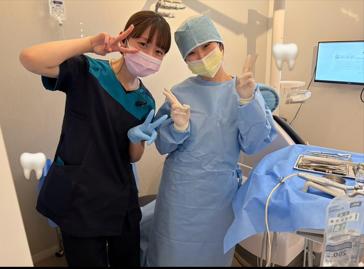 .こんにちは!平和歯科クリニック中村です🦷.先日のインプラントオペ前の一枚です!2年目コンビです👏2人と..
