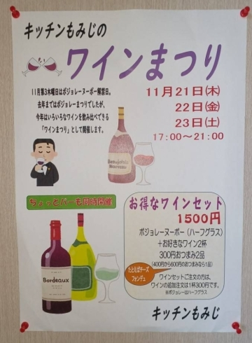 豊平区月寒東の洋食屋さん#キッチンもみじさんの新着投稿です。11月も半ば、もみじ便りでお知らせしてました「ワインまつり」が近づいてきました昨年までのボジョレーまつりとは少し趣向を変え、いろいろなワイン..