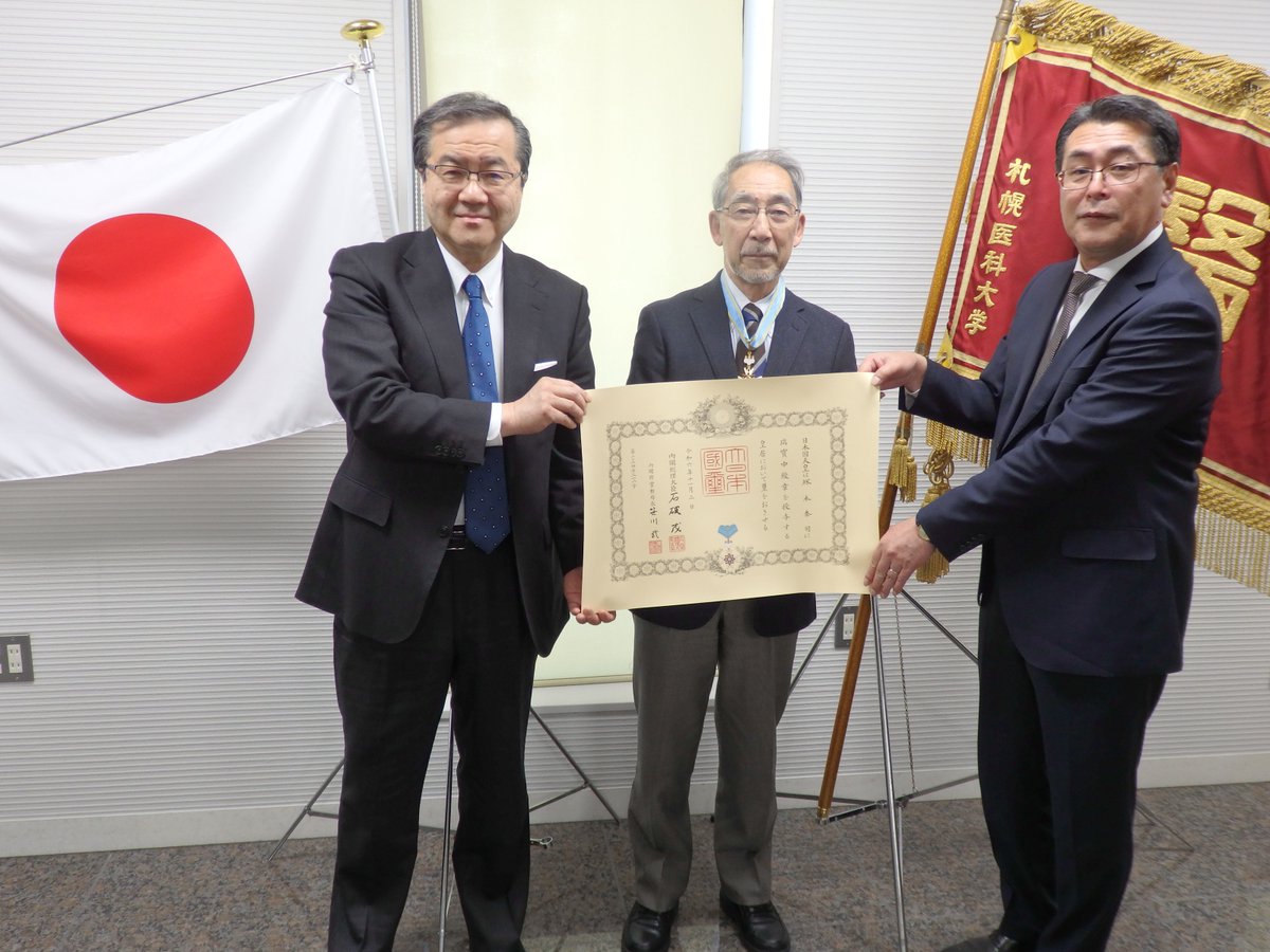 令和6年度秋の叙勲塚本泰司札幌医科大学元理事長・学長/名誉教授が瑞宝中綬章を受章され、本学に受賞の報告に来学されました。詳細は、下記ページをご覧ください。https://web.sapmed.ac.j..