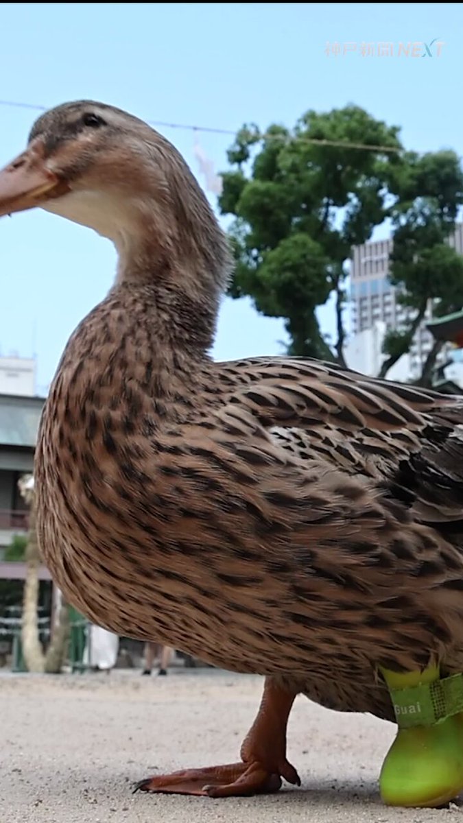 長靴姿、見れるカモ? 左脚リハビリ中のカモ「すーちゃん」 本編動画&写真記事 https://kobe-np.co.jp/news/society/202509/0019469295.shtml… @kobeshinbun #神戸 #生田神社
