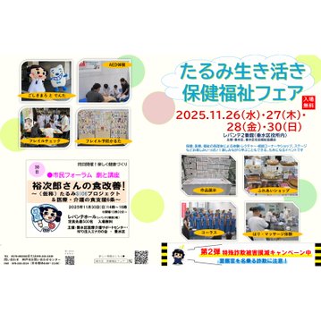 ●ご案内●11月26日(水)~11月28日(金)、11月30日(日)に、たるみ生き活き保健福祉フェアが開催されます。パネル展示や物販、体験会、ステージ等々、様々なイベントが企画されています。▼さらに詳..