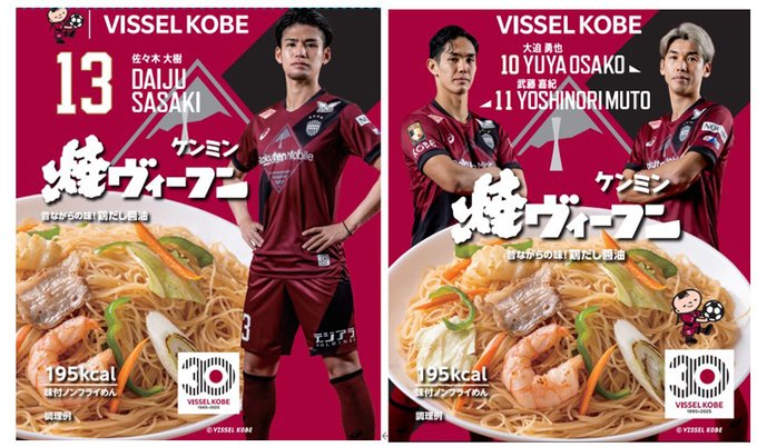/オフィシャルパートナーケンミン食品株式会社(@kenmin_jp)様とのコラボ2025焼ヴィーフン、関連グッズを販売\各選手やモーヴィをデザインしたパッケージ、そして今シーズンは選手コラボの新パッケ..