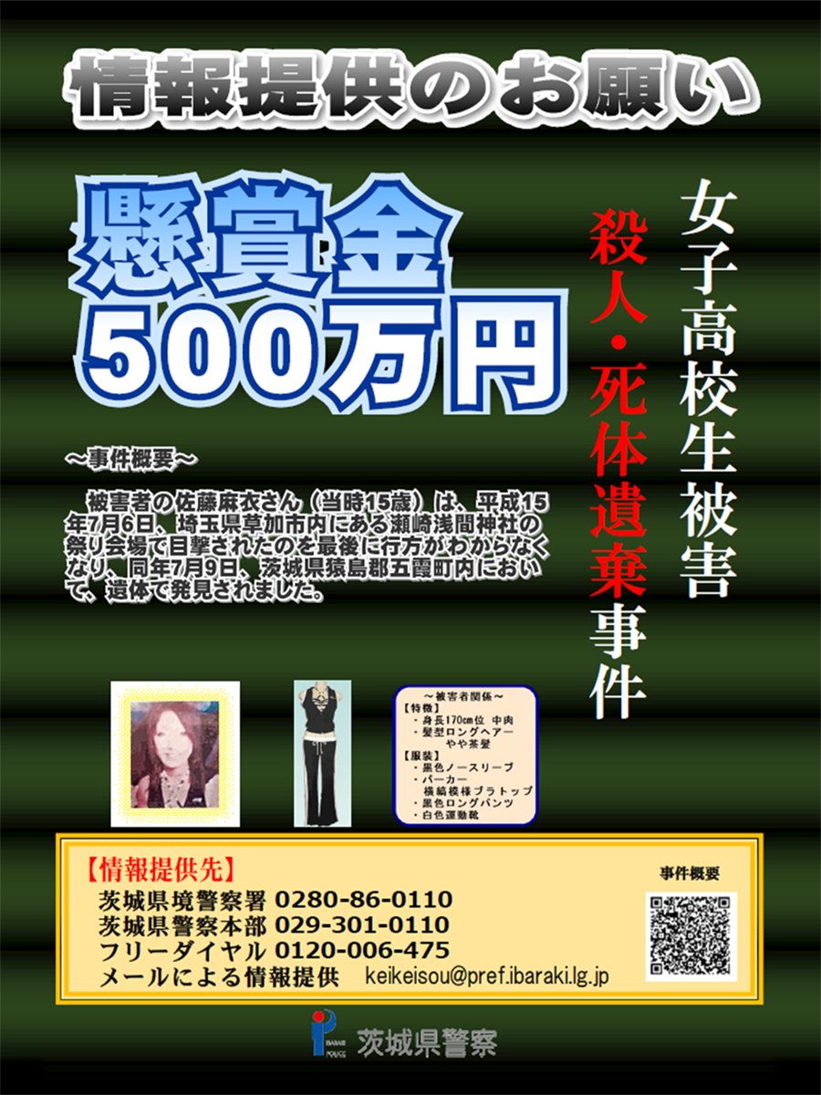 【情報提供求む】平成15年7月9日、茨城県猿島郡五霞町大字川妻地内において発生した女子高校生被害の殺人・死体遺棄事件につき7月7日、埼玉県#草加市内の#谷塚駅及び#瀬崎浅間神社の祭り会場で、事件解決の..