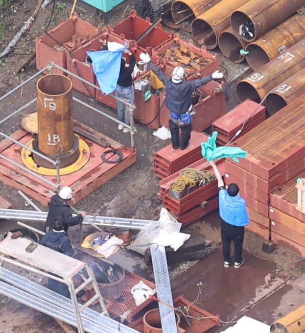 【速報】能登半島の大雨で土砂崩れが発生した輪島市の中屋トンネル復旧工事現場付近で、本社ヘリが撮影しました。安否不明になっていた作業員5人とみられ、消防や自衛隊に向けてブルーシートを振っています。北陸地..