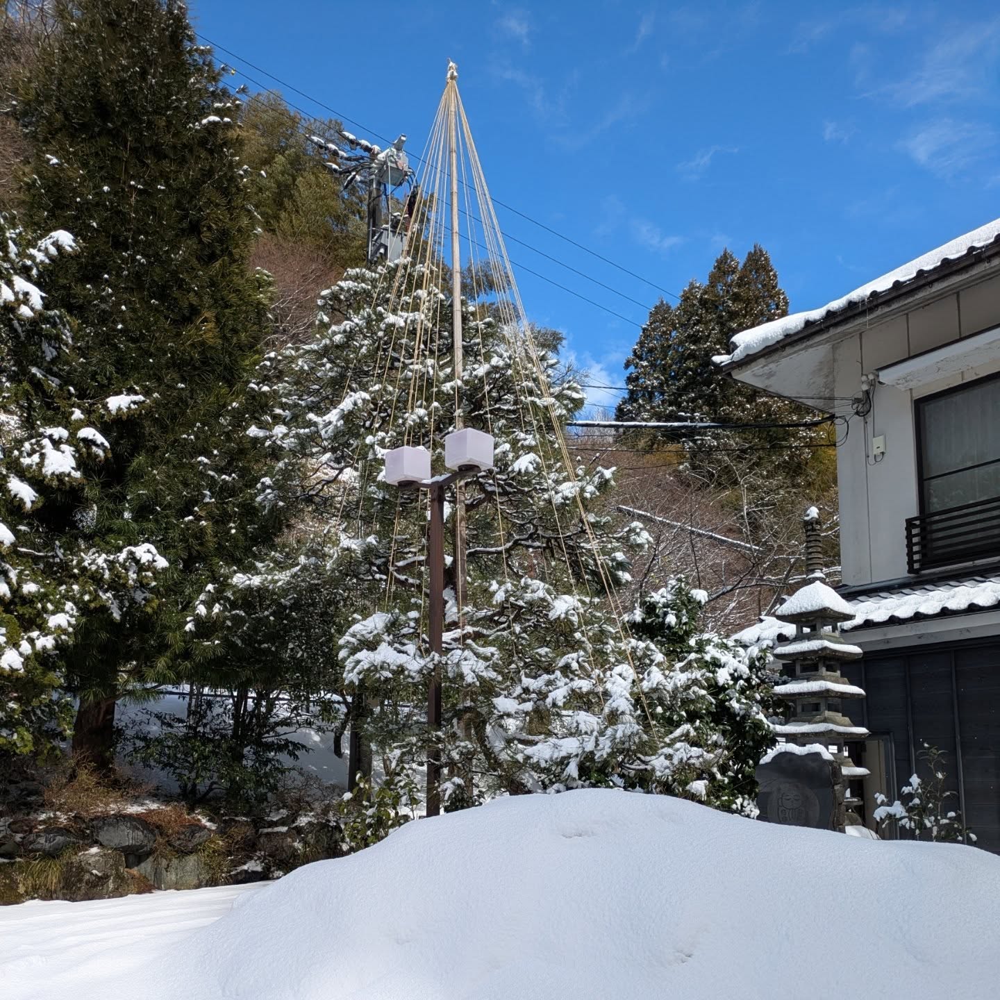 雪の石屋あっという間に降った。こんもりと、玄関前能舞台寒いけど、冷たいけど美しいと感じます。#日本..