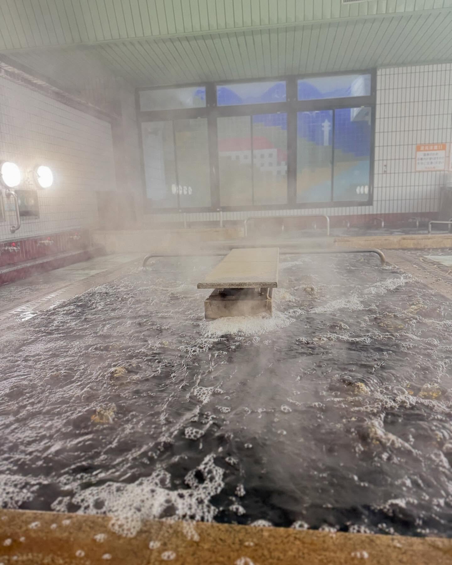 金沢では珍しい青空が続いていて嬉しいですね☀️晴れの日の朝風呂は光差し込む浴槽で黒湯がキラキラ、湯気..