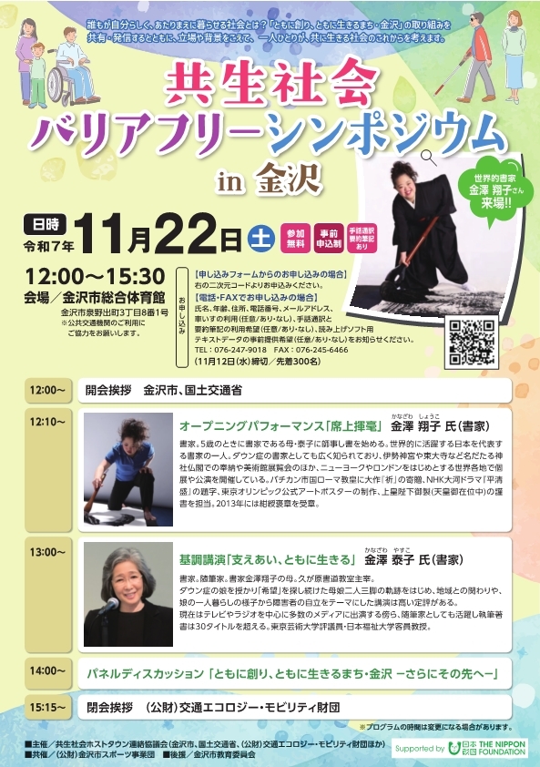 【11/22(土)共生社会バリアフリーシンポジウムin金沢】「#ともに創りともに生きるまち・金沢」の取り組みを共有・発信するとともに、一人ひとりが共に生きる社会のこれからを考えます。オープニングでは、..