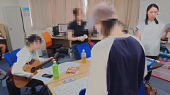 8月26日 今日のグループワークは #ハンドベル 今月は利用者さんのギター入り♪ #吉宮英里 先生によるレッスンで #君をのせて を練習しました。 見学の方も参加されて、体験されていました。 ハンドベルは音色が綺麗でステキですよね♪