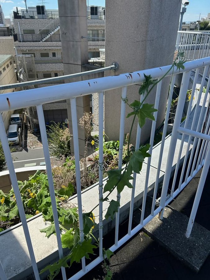 #エコポリスセンターです。地下1階中庭(エコサークル)の緑のカーテンの生長記録を更新しました。屋上の手すりにヘチマのツルが絡まっていました。ご紹介ページはこちらからどうぞ♪https://itbs-e..