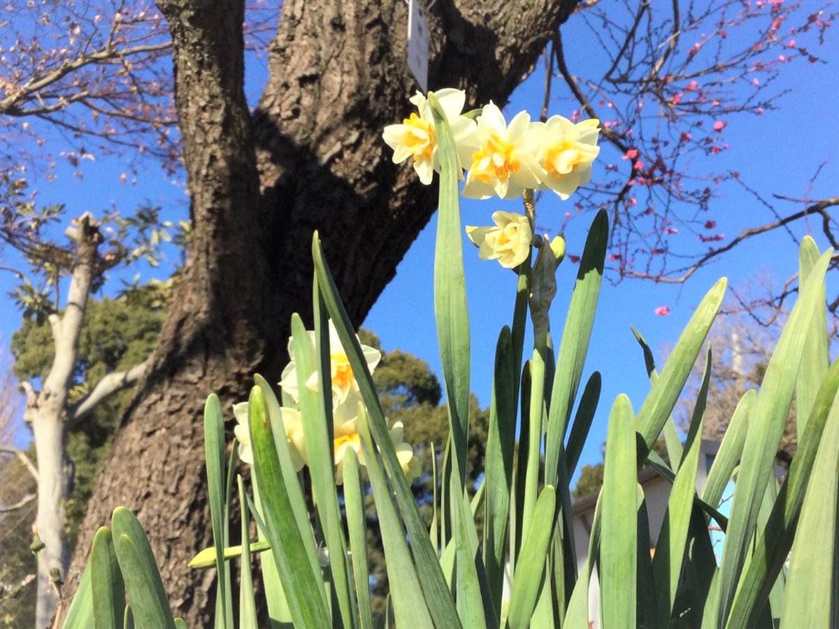 次々と花開いていく紅梅ばかり見てしまいますが😊その下で咲くスイセンもぜひ✨紅梅とともに愛でてあげてください😌#赤塚公園#紅梅#スイセン021