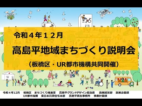 令和4年12月8日、10日に板橋区とUR都市機構が共同で開催した「高島平地域まちづくり説明会」の内容を動画でご説明します。