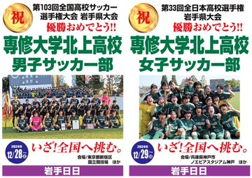 【熱烈応援】男子、女子とも初戦は12月29日岩手代表 #専大北上 がんばれ! 〈男子〉専大北上vs高知(12時5分) 〈女子〉専大北上vs日本航空石川(11時) #全国高校サッカー選手権大会 #全日本高校女子サッカー選手権大会 #岩手日日