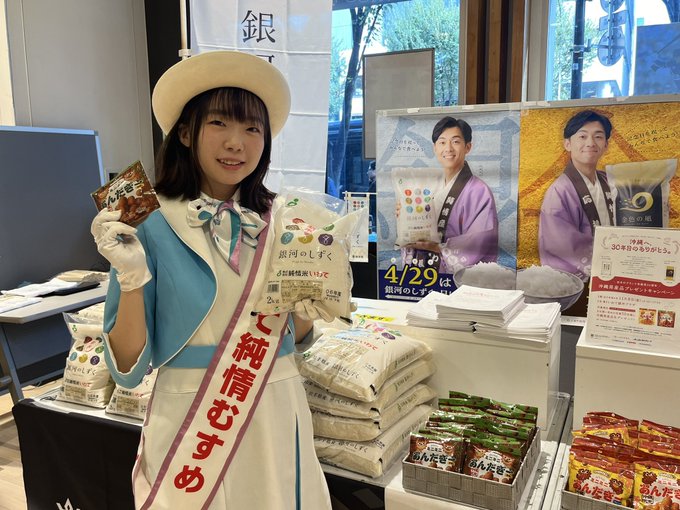 いわて銀河プラザで「岩手のブランド米発売30周年沖縄県産品プレゼントキャンペーン」が始まりました。金色の風、銀河のしずくを購入してくれた方に、いわて純情むすめの桐明さんから「ミニミニアンダギー」プレゼ..