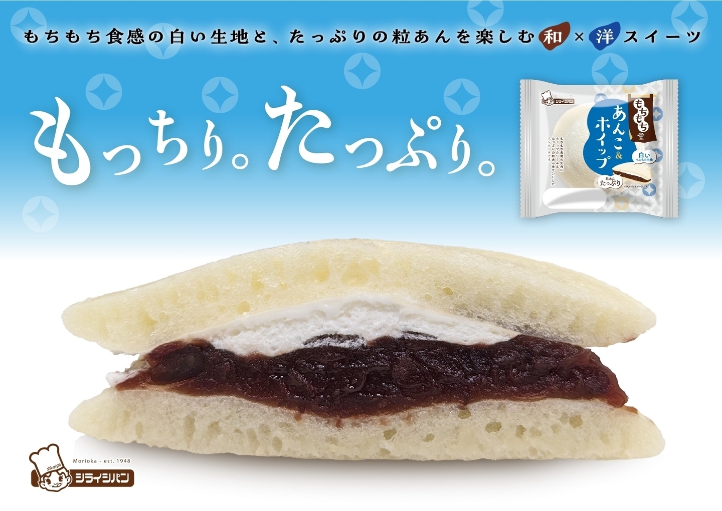 【11月新商品】「もちもち堂あんこ&ホイップ」シライシパン自慢の白いもちもち生地に、たっぷりの粒あん..