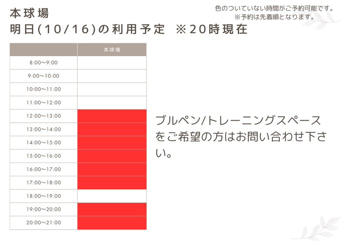 みなさまこんばんは 明日10/16の利用予定です 屋内練習場 午前中空きがございます ぜひご利用下さい ご予約はこちらから http://reserve.iwatemorioka-bp.com #きたぎんボールパーク