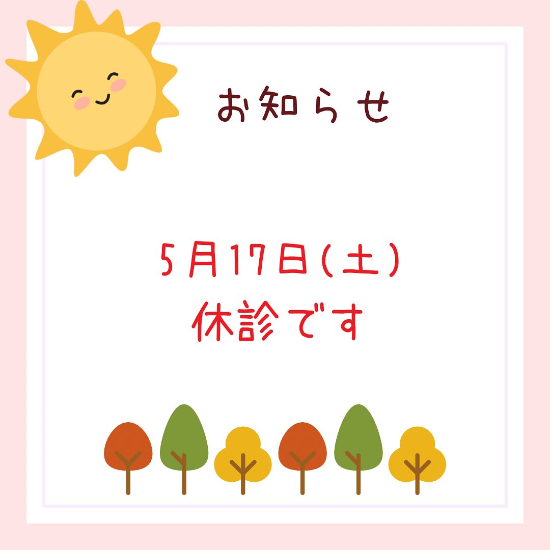 お知らせです!5月17日(土)は休診となりますので皆様ご注意ください🙇🏻♀️お産の方はいつも通り受け付けて..