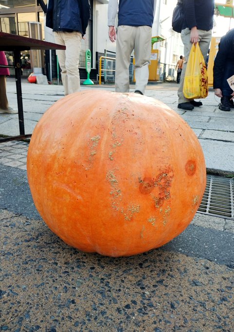 材木町よ市はろうぃん恒例ジャンボかぼちゃ重さ当てクイズ 今年のかぼちゃはコレだ!