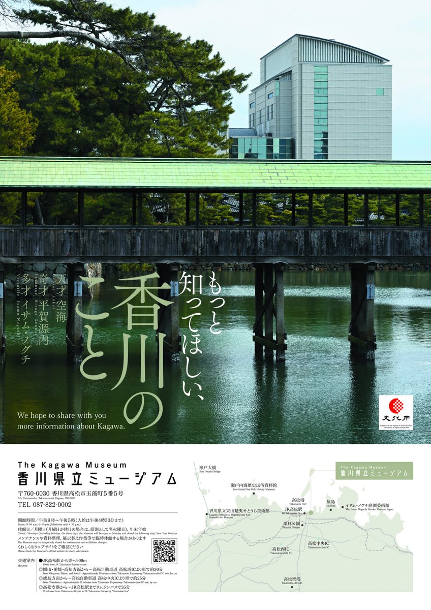 県ミュ、PRポスター完成!落ち着いた雰囲気のデザインとなりました。2/8に撮影した写真を使っていますが、写っているのは玉藻公園の鞘橋とミュージアム…?この写真、どこから撮ったかお分かりですか?#香川県..